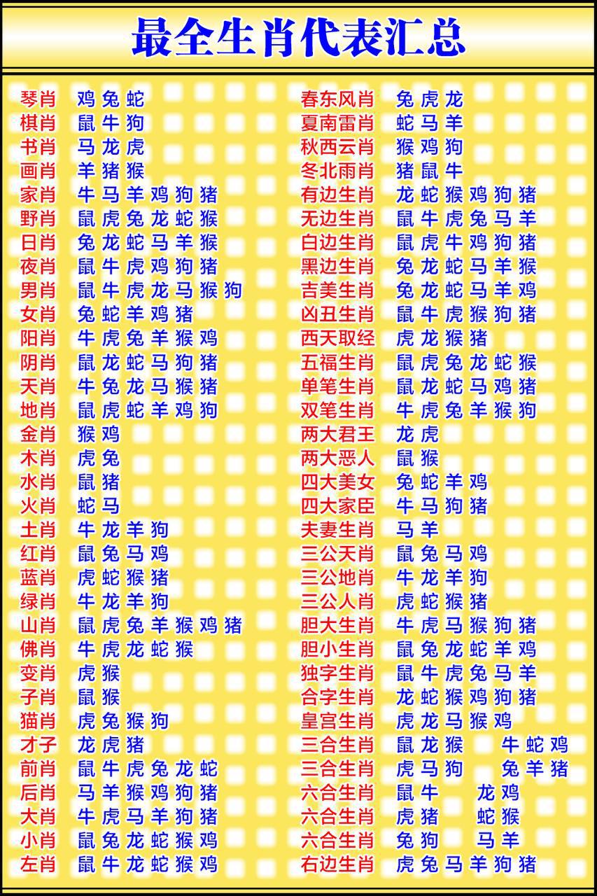 琴:兔蛇鸡 棋:鼠牛狗